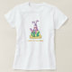En något förbluffad Påskhare i tecknaden är sitta på ett överdimensionerat, dekorerat Påskägg, som dvärgar det bo i. En underbar roligt t-shirt med en Påsk-tvist - bara för att kyla! Bildkod: debode
