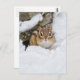 Ett foto av en söt liten kylig chipmunk i snö. Hon får nog alla att le med sin febriga snöantik.
