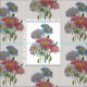 Gammalmodig botanisk illustration av Chinans stjärnor i rosa, vitt och blått.