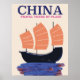Chinan "Travel där vid flygplan", en vacker exklusiv eller vintage stil-reseaffisch för en fiskebåt på hav, hav eller flod.