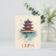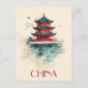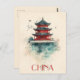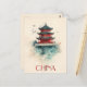 Detta vykort för resor är inspirerat av de kinesiska tempelerna. Det finns en röd templillustration med tre våningar i vattenfärgen stil.