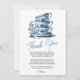 Uttryck din tacksamhet med elegans med detta kineseri blå staplade tekoppar Bröllopsdusch Tekort Tack-kort! Med en klassisk blå-vit kineserimotiv med vackert staplade tekoppar är detta kort perfekt för att tacka gästerna efter en tekoppsinspirerad bröllopsdusch, bröllop eller speciell fest. Den tidlösa och sofistikerade estetiken gör det till en minnesvärd notis om uppskattning för vänner och nära och kära.