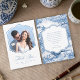 Det här slående "Tack"-kortet har en tidlös elegans i en klassisk blå-vit palett med ett vackert Chinoiserie-mönster och elegant kalligrafi. Kollektionen har sofistikerade mönster och ömtåliga motiv inspirerade av traditionell kinesisk porslin, vilket skapar en förfinad och romantisk estetik. Från vackert designade inbjudningar till samordnade festtillbehör och dekorationer, varje detalj är genomtänkt utformad för att ge en känsla av grace och charm till din speciella dag. Anpassa varje del med dina detaljer för en verkligt unik bröllsupplevelse. Sök ID1094 för att se alla samordnade produkter i den här kollektionen.