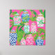 Chinoiserie burk och handflatan löv om shock rosa canvastryck