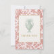 Elegant and refined, this Chinoiserie thank-you card features a soft blush toile border adorned with playful monkeys and delicate vines — a nod to vintage French design with a touch of whimsy. At the center, a pale jade-green urn sits gracefully within a crisp white panel framed in gold, creating a perfect balance of sophistication and charm.