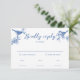 Delft Blå Fåglar Vår Bröllop RSVP-kort är designat för att samordna med vår samling av bröllopsinbjudningar i Delft Blå Fåglar Vår. Med eleganta Delft Blåfåglar som sitter på en delikat kvistblomma illustration, fångar denna inbjudan den förtrollande skönheten i vårens bröllop. Matchande artiklar finns tillgängliga.