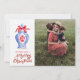 Det här kinesiska Ginger Burk-julkortet har ett blått och vitt Chinoiserie-ingefära burk med rött båge. Texten säger "Wishing you a God jul" med ett ställe för att lägga till din favoritehoto. På baksidan finns en rad ingefära burk med bögar. Du kan anpassa dig med ett meddelande, ett foto och ditt namn.