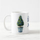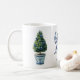 Sitt din favoritdryck i stil med den här kinesiska julen Topiary Träd Mugg. Den har en vattenfärgspopiär i blå och vit kinoiserie-planterare och en toile blue bow. Den ger en aptitlig, barnårtusensidig beröring till dina helgdag. Anpassa det med ditt namn för att göra det unikt för dig eller skapa en tankfull gåva till någon speciell. Ett perfekt sätt att njuta av kaffe, te eller kakao när man firar säsongen i tidlös stil.