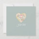 En andedräkt av blommor och löv blandad med bär ramar din bröllopsinbjudningstext. Den omvända sidan har en silver-sida, mjukt muterad grått grönt färg (som kan ändras) med en hjärtform som skapades ut från samma blommor som framsidan. Det finns en komplett uppsättning matchande produkter. Copyright, Audrey Jeanne Roberts.