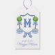 Chinoiserie Watercolor Bow Topiary Monogram Vapens Presentetikett