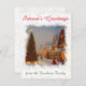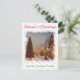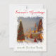 Säsongens hälsningar! En chintzy vintage stil-design med Julgranar i en snöig liten by där lokalbefolkningen handlar och har roligt. Bilden är spänd runt kant och upplöses i ett mönster som täcker konstruktionens yttre del. Känn dig fri att anpassa huvuddelen av hälsning och (naturligtvis) din egen familj namn. Anpassa baksidan med ditt eget hälsning-meddelande.