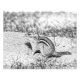 En svart och vit skiss med ett nära foto av en chipmunk på marken. Det här är en av de kretsar som bor på en campingplats i Ticonderoga, NY. Den här bilden togs av Debbie Quick of Debs Kreativ Bilder. Om du vill se fler foton från Debbie kan du läsa hennes webbplats på: www.debscreativeimages.com