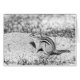 En svart och vit skiss med ett nära foto av en chipmunk på marken. Det här är en av de kretsar som bor på en campingplats i Ticonderoga, NY. Den här bilden togs av Debbie Quick of Debs Kreativ Bilder. Om du vill se fler foton från Debbie kan du läsa hennes webbplats på: www.debscreativeimages.com