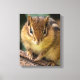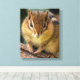 En söt chipmunk startar intensivt på kameran från en fallande träd gren..