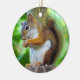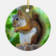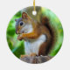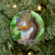 Chipper Red-ekorren tillför en tydlig anmärkning till keramisk ornament. Underbart foto för visning i år!