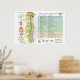 Färgfull anatomisk bild som visar det autonoma nervsystemet i förhållande till ryggraden och de inre organen. Nerver som representerar det sympatiska, parasympatiska och cerebralspinala systemet. Chiropraktik poster en lista över effekterna av subluxation av ryggraden på kroppsytor och eventuella symtom i samband med detta. Färg kodat efter ryggrad.