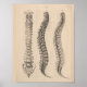 Anatomiska illustrationer av ryggraden i vintagen. Fönstervy, sidovy och kor-sektion.