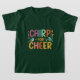 Den här t-shirt-designen sjungor med lycka! Den innehåller meddelandet "Chirp for Cheer" i en visning med vibrerande multifärgad. Varje ord är ett annat färg som framkallar fåglar och vårar, skapar en ljus och glad atmosfär. Föreställ dig färg som solsken gult, ljusblått som en klar himlar och läskig grönt. Utformningen är en perfekt för alla som för med sig glädje till andra och finner lycka i det enkla sak, som en fågels fromma sång.