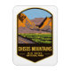 A vintage travel badge design of the Chisos Mountains or Chisos located in Big Bend National Park in the the Trans-Pecos region of Texas