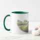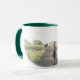 En mugg med vignetted fotograferar av Chloe kängurun, och Sam som sheepdogen på deras morgon går