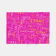 Typografisk kortnamn text rosa, gul och vit på en het och stark rosa bakgrund skräddarsydd filt design. Bakgrundsfärgen kan ändras om det behövs. Kul grafisk text personlig filt. Perfekt för bilen, camping för vinterkvällar eller utflykter. Personifiera med ditt eget korta namn, nu står det Chloe. För hjälp med anpassning och andra namnlängder vänligen kontakta mig. © Konst och design av Sarah Trett för www.mylittleeden.com