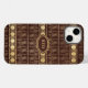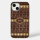 Den här utformningen har tre guldäggformade gräns över en chokladbrun och guld mönster som är löst lik abstrakt bohemiska fjädrar. Den här höftplanen känns som en unik blandning mellan modern och vintage. Er initialer är inringad i guld mot bruna bakgrund. Skriv initialer i avsnittet Personlig. Obs! guld i den här utformningen är inte ett blankt fotoutskrift. Det är ett guld färg som simulerar ett glansigt utseende.