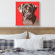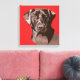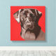 Den här häpnadsväckande poster visar min målning av en underbar chokladbrun Labrador, mot en ljusröd bakgrund. Labradors, eller Retriever, Gun hundar är ett mycket populärt husdjur på grund av deras intelligens och milda dispositioner. De används ofta även till tåg som assisterande hundar. Jag är en underbar fläkt av denna underbara ras.