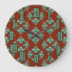 Chocolate Brown och Teal Damask Clock Stor Klocka