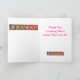 Säg "Tack" till ett kvarter, älskare eller någon med det här färgstarka, helt anpassade hälsningskortet. Lägg till ditt eget ord och namn. Känslan ord inuti kortet kan anpassas till ditt eget ord. Den här originalfiguren gör en pulserande färg-anteckning eller hälsningskort. Kloka konst som bygger på originalkonstverk har favoritlappar av lapptäcke plus unika block i pulserande och dynamiska färger av orange, gult, rosa, turkos och lime green på en varm chokladbrun bakgrund för en vacker färg-palett. En kalkgrön oval finns på kortets framsida för att säga "Tack" eller andra hälsning efter eget val. Visa kärlek för att du ska kunna klämma med de här konsformade designerna med andra konsthantverk. Quilt art är originalkonst från tyg och formgivare Phyllis Dobbs och finns i en textilsamling från Quilting Treasures. Den här konsten finns på andra produkter och i flera färg-miljöer. Fler produkter finns tillgängliga i Phyllis Business withFlair-butiken. Matcha med samordning av frimärke, kuvert, klistermärken och returetiketter.