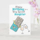 Ett vackert exempel på en choklad i hand plockade pub som har dragits tillbaka och där den utsökta chokladen delar i sig har lutat mot två söta champagneglas fyllda med bubblor. Ord, grattis på födelsedagen till en mycket speciell dotter (som kan bytas ut mot barndotter, systerbarn osv.) visas på vit bakgrund. Insidan har ett vackert anbudsförfarande som bör anpassas till den spelar ingen roll familjerelation i kostym som du har infogat på framsidan.