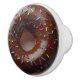 A chocolate frosted donut with sprinkles realistic food kitchen cabinet knob.