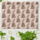 This Easter kitchen towel has a watercolored chocolate bunny with a pink bow on a pink background.