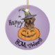 Dags för Halloween-roligten! Gå och Trick eller Behandla med den här söta chokladens marionetthäxa, som bär en häxhatt, i ett leende Jack-o-Lantern. Underbar för barn av alla åldrar som kärlek Labrador Retrievers och Halloween. Lycklig Howl-oween!