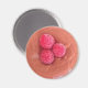 Quirky fridge-magnet med utsökt tittar hallon och chokladmunsdessert.