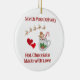 North Pole Delivery, Hett Chocolate Made med Kärlek med en kopp av hett choklad och hjärtan på en keramisk ornament.