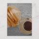 En kopp av tjockt, rik choklad serverade churros, spröd på utsidan och mjuk på insidan. En av de mest utsökta snacks i världen. Hittade på gator och kaféer i Spanien och i många ställe i Latinamerika. Här med bakgrunden till en rundad metall-räknare vid en lokal kaffebryggare.