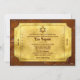 Choklad-guld biljett Bar Mitzvah-inbjudan. Detta skulle också vara ett bra val för en choklad- eller godis-guld biljett Bat Mitzvah-inbjudan. Designen har en smält chokladbakgrund med en överlagring av en guld biljett. Det finns en judisk David-stjärna och texten, medan den fortfarande är traditionell, återspeglar också temat guld biljett eftersom det högst upp står "Hälsningar till upphittarna av denna guld biljett". Biljett numret som visas på inbjudan är datumet för Bar eller Bat Mitzvah-evenemanget. Denna guld biljett Bar Mitzvah eller guld biljett Bat Mitzvah-inbjudan är perfekt för en choklad- eller godis-tema Bar eller Bat Mitzvah.
