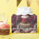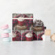 En ångröd mugg fylld med vispgrädde, försedd med candy cane, sitter på en träplatta med träplattor som stavar "december"