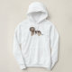 Desteis ursprungliga tecknad illustration av en söt, lång hårchoklad brun och brunt äpple jackar hund av färg Dachshund.