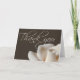 Vintervit ros mot en chokladbakgrund med "Tack" i skrivstil. Perfekt kort för dina tack-kort.