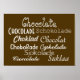 Du har har choklad på din poster! Med detta chokladspråk poster man choklad på engelska, portugisiska, spanska, rumänska, nederländska, tyska, svenska, Fransk, danska, polska, norska, italienska och finska på poster! Den här chokladbrun poster vit text i en rad typsnitt som lyder "Chocolate Chocolade Schokolade Choklad Chokolat Chokolade Czekolada Sjokolade Cioccolato Suklaa". Mmmm.. Choklad.