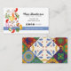 Affärskortets perfekt för en kock, catering eller restaurang med huggna veggier som kaskar ned längs sidan och som är fullt skräddarsydd text och ikoner. Baksidan är försedd med ett vackert mexikanskt talavera-motiv. Anpassa detta till kostym för dina behov! Det skulle också kunna vara underbart för en bloggare för hälsomat, en vegetarisk kock, en konsult för hälsovård, hemkock, dietist och mycket annat.
