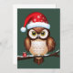 Ce design charmant présente une illustration détaillée d’une chouette brune et blanche perchée sur une branche. La chouette porte un bonnet de Noël rouge parsemé de flocons de neige blancs, ajoutant à l’esprit festif. Ses grands yeux captivants attirent l’attention, tandis qu’un petit cadeau rouge avec un ruban blanc repose subtilement à la base de la branche, suggérant la nature généreuse de la saison des fêtes. Ce design capture la chaleur et la joie de Noël à travers la représentation de cet oiseau emblématique de l’hiver dans un cadre cosy et célébratoire.