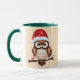 Ce design charmant présente une illustration détaillée d’une chouette brune et blanche perchée sur une branche. La chouette porte un bonnet de Noël rouge parsemé de flocons de neige blancs, ajoutant à l’esprit festif. Ses grands yeux captivants attirent l’attention, tandis qu’un petit cadeau rouge avec un ruban blanc repose subtilement à la base de la branche, suggérant la nature généreuse de la saison des fêtes. Ce design capture la chaleur et la joie de Noël à travers la représentation de cet oiseau emblématique de l’hiver dans un cadre cosy et célébratoire.