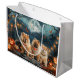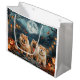 Släpp upp spookandan med den här eerie Halloween-designen med en hundar-förpackning under en mörk, månbelyst himmel, omgiven av flygande fladdermus och glödande pumpor. Perfekt för dem som kärlek en aning skrämmande roligt med sina hårigets vänner!
