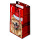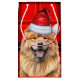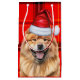 En söt Chow Chow klädde sig för årstiden i jultomtens hatt, parar med en röd och svart helgdag för att skapa en underbar presentväska till hund älskare julhelgen.