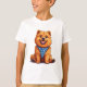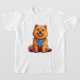 Tecknad-stil illustrerar en fluffy, glad hund. Hund har en ljus orange som jackar med en bushy mane och ett vänligt uttryck som visar ett stort leende från lycklig. Dess ögon är stort och uttrycksfullt och bidrar till dess lekfulla beteende. Hund är bekvämt i sitta, med tassar på framsidan, och det bär en blå bandana med vit blomma mönster runt nacke. Bildens övergripande syntax är söt och bjuder in, skapar det som en hjärtslitande bild av en hund. Bakgrunden är helt vit, vilket understryker hund pulserande färg.