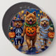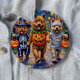 Den berömde Chow Chows klädd i lekfulla Halloween-kostymer bär pumpkiner medan man lurar eller behandlar under den månbelysta himmel. Denna festliga utformning belyser rasens flyktiga jacka, lionliknande mane och värdiga personlighet, som perfekt fångar den förevändning som ändå var glad över Halloween-natten. Ett härligt firande för hundälskare och Halloween fläkt.