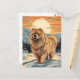 Färgfull konst med en Chow Chow i snöbergen under solnedgången.