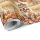 En vattenfärgsmålning stil av ett muntert sitta i hund i en hög av pulserande höst löv, omgiven av små pumpor och spridda hörn. Hund bär lite pilgrimhatt och beams med glädje, och fångade Thanksgivingens anda. I bakgrunden skapar mjuk skörd fält och träd med gyllene hud en fredlig landskapsambians. Struktur och varma, nedsmutsade hösttonar ge är en mysigt, nostalgisk perfekt för att fira säsongens skönhet.